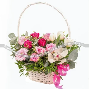 Свежесть осени - букет с желтыми хризантемами и орхидеями