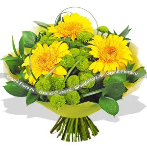 Ласковый май - букет из гербер и кустовых хризантем