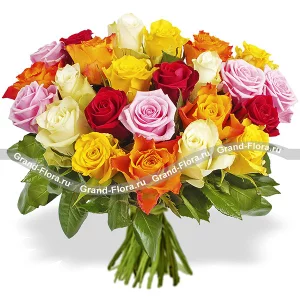 Особенные чувства - букет из разноцветных роз с гипсофилой