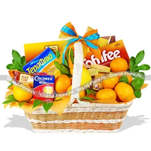 Цитрусовый эликсир - корзина подарочная с фруктами и конфетами