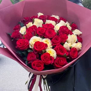Аромат нежности – букет из белых и розовых роз (50-60 см)
