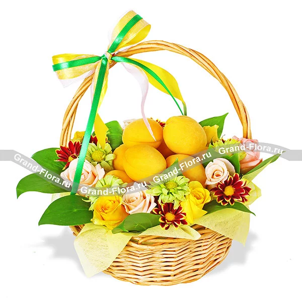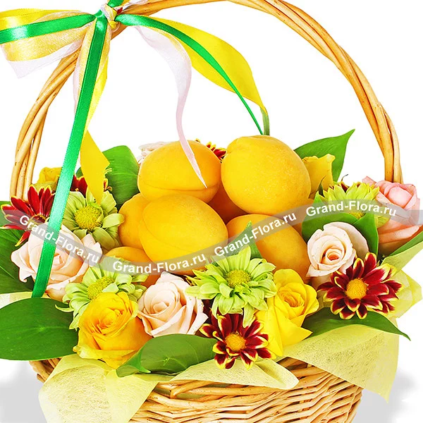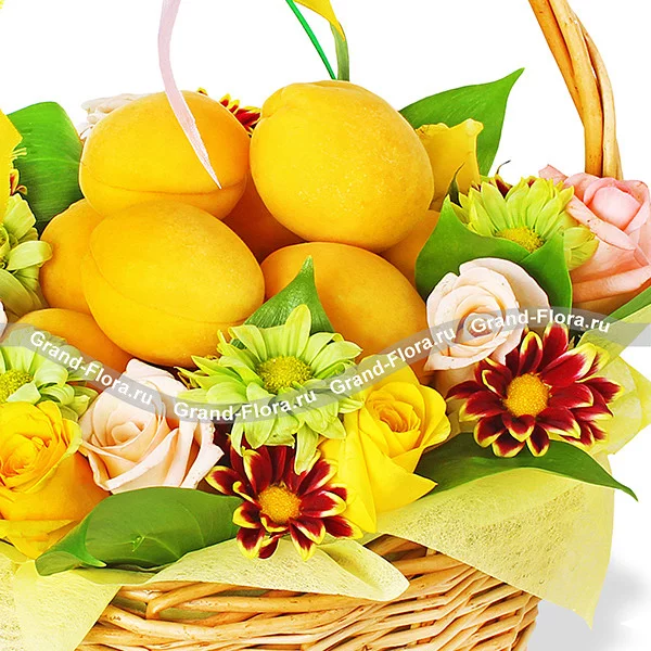 Цветущий сад - корзина с розами и абрикосами