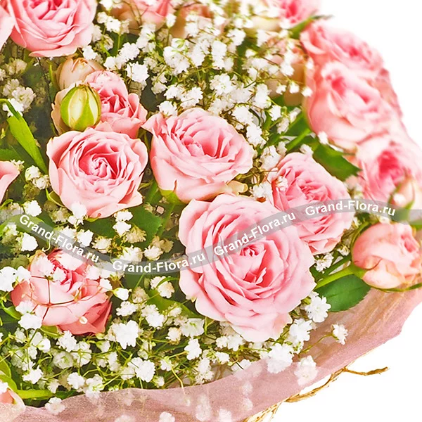 Нежный аромат цветов деликатен и ненавязчив, а сам букет может достойно украсить дом или офис. Этот букет для тех, кто любит делать подарки. Просто так. Для тех, кому важно хорошее настроение близких. Розовый цвет расскажет о Вашем веселом нраве и искренней симпатии, и каждый раз, вдыхая чудесный аромат, о Вас будут вспоминать с улыбкой и нежностью.